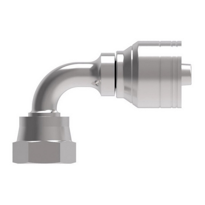Aeroquip® 4-Spiral Crimp Hose 90 deg Short Drop Elbow, 4S Series, Hose Connection: 3/4 in, Connection Type 1: Hose, Connection Size 1: 3/4 in, Hose Dash Size: 12, Connection Type 2: ORFS Swivel, Gender 2: Female, Connection Size 2: 3/4 in, Nominal Size: 3/4 in, Thread Size 2: 1-3/16-12, Hex Size: 36 mm, Carbon Steel, Finish: Dura-Kote, For Use With: EC525-12 to -32, GH493-12 to FC636-12 to -32, FC736-12 to -32, FC500-12 to -24, FC273B-12, -16, GH506-12 to -32, FC254-12 to -32, EC810-12, -16, EC600-12, -16 H430-12 to -32, H430R-12 to -32, EC525-12 to -32, H471-12 to -24, H464-12 to -32, and H485-16 Series Hoses, Dimension Standards: SAE J1176