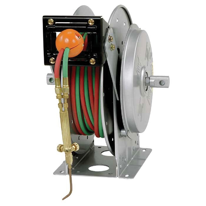 Hannay Reels® Gas Welding Hose Reel, N400 Series, 50 ft Length Hose, 3/8 in Hose Inside Diameter, Connection Type: FPT, Inlet Size: 1/2 in FPT Swivel, Winding Method: Spring Rewind, -40 to 200 deg F, 200 psi, Dimensions: 20.75 in L x 15.12 in W x 20 in H, For Use With: Right Hand for Oxygen, Left Hand for Gas