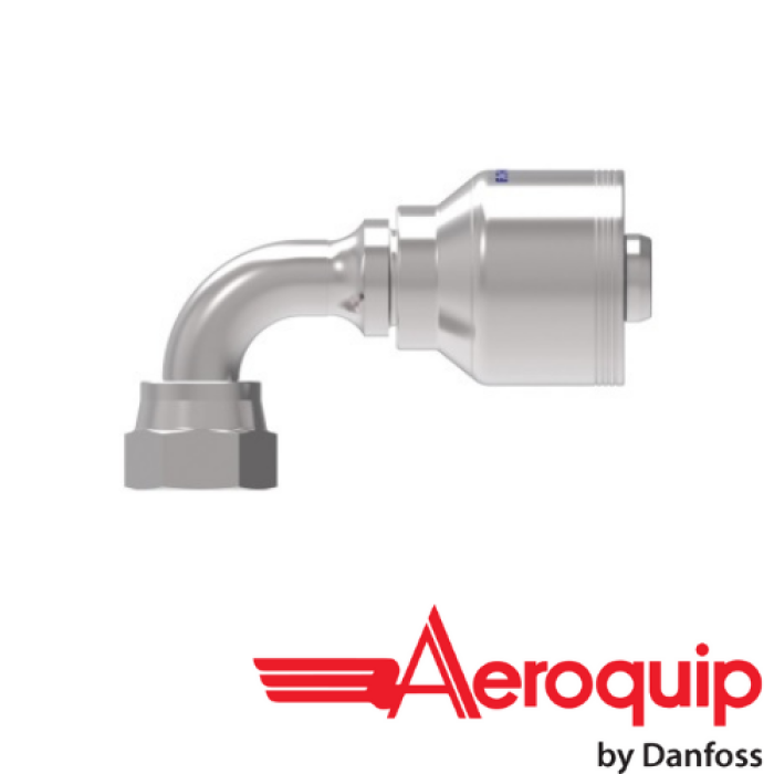Aeroquip® 4-Spiral Crimp Hose 90 deg Short Drop Elbow, 4S Series, Hose Connection: 5/8 in, Connection Type 1: Hose, Connection Size 1: 5/8 in, Hose Dash Size: 10, Connection Type 2: ORFS Swivel, Gender 2: Female, Connection Size 2: 5/8 in, Nominal Size: 5/8 in, Thread Size 2: 1-14, Hex Size: 1-1/8 in, Cut-Off Factor: 1.91 in, Carbon Steel, Finish: Dura-Kote, For Use With: EC525-12 to -32, GH493-12 to FC636-12 to -32, FC736-12 to -32, FC500-12 to -24, FC273B-12, -16, GH506-12 to -32, FC254-12 to -32, EC810-12, -16, EC600-12, -16 H430-12 to -32, H430R-12 to -32, EC525-12 to -32, H471-12 to -24, H464-12 to -32, and H485-16 Series Hoses, Dimensions: 3.07 in L x 1.481 in W x 2.54 in H, Dimension Standards: SAE J1176