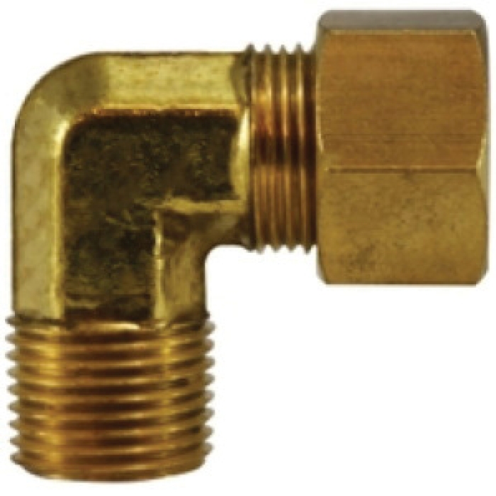 Midland Metals Self-Align 90 deg Elbow, Connection Type 1: Compression, Connection Size 1: 1/4 in, Connection Type 2: NPT, Gender 2: Male, Connection Size 2: 1/8 in, Brass