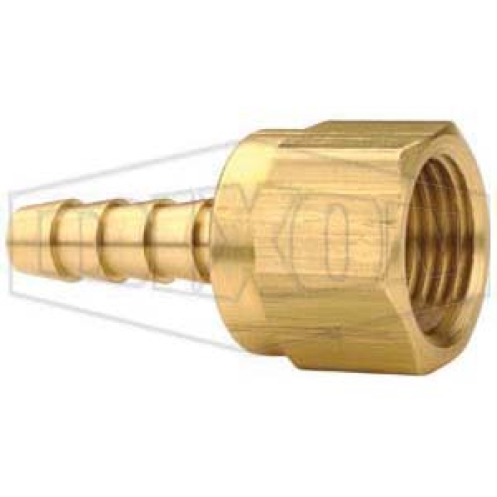 Dixon® Hose Barb, Connection Type 1: Hose Barb, Connection Size 1: 3/16 in, Connection Type 2: SAE 45 deg Swivel, Gender 2: Female, Connection Size 2: 3/16 in, Thread Size 2: 3/8-24 UNF, Hex Size: 7/16 in, Brass, For Use With: Hose Clamps or Crimped Ferrules