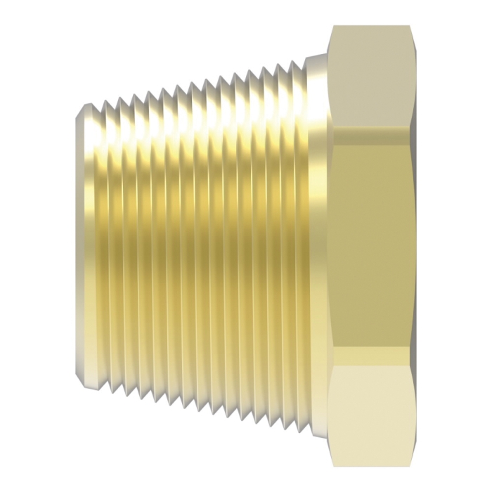 Aeroquip® Straight Pipe Bushing, 3220x-CT Series, Connection Type 1: NPTF, Gender 1: Male, Connection Size 1: 3/8 in, Thread Size 1: 3/8-18, Connection Type 2: NPTF, Gender 2: Female, Connection Size 2: 1/4 in, Thread Size 2: 1/4-18, Hex Size: 11/16 in, 5000 psi, Brass, Dimensions: 0.69 in L x 0.6875 in W x 0.6875 in H, Dimension Standards: SAE 130140, -65 to 250 deg F