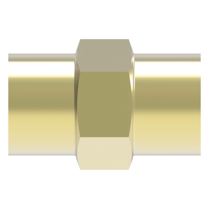 Aeroquip® Coupling, 3300x Series, Connection Type 1: NPTF, Gender 1: Female, Connection Size 1: 1/4 in, Thread Size 1: 1/4-18, Connection Type 2: NPTF, Gender 2: Female, Connection Size 2: 1/4 in, Thread Size 2: 1/4-18, Hex Size: 3/4 in, 1200 psi, Brass, Finish: Nickel-Plated, For Use With: Brass, Bronze, and Iron Pipe, Dimensions: 1.12 in L x 0.75 in W x 0.75 in H, Dimension Standards: SAE 130138, -65 to 250 deg F