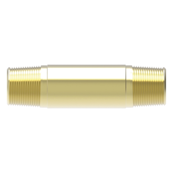 Aeroquip® Straight Long Nipple, 3330x Series, Connection Type 1: NPTF, Gender 1: Male, Connection Size 1: 1/4 in, Thread Size 1: 1/4-18, Connection Type 2: NPTF, Gender 2: Male, Connection Size 2: 1/4 in, Thread Size 2: 1/4-18, 1200 psi, Brass, Dimensions: 2.97 in L x 0.5625 in W x 0.5625 in H, -65 to 250 deg F