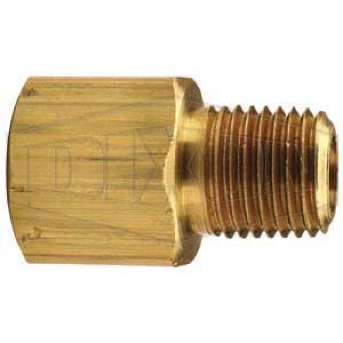 Dixon® Adapter, Connection Type 1: NPTF, Gender 1: Female, Connection Size 1: 3/4 in, Connection Type 2: NPTF, Gender 2: Male, Connection Size 2: 3/4 in, Hex Size: 1-3/8 in, Brass, For Use With: Brass/Copper/Iron Pipe, Dimensions: 1.69 in L, Dimension Standards: SAE 130139, -65 to 250 deg F