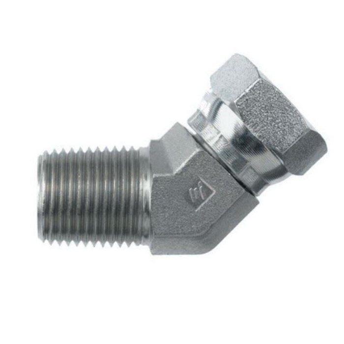 Brennan 1503 Forged Steel 45 deg Elbow, Connection Size 1: 1 in, Gender 1: Male, Connection Type 1: NPT x Connection Size 2: 3/4 in, Gender 2: Female, Connection Type 2: NPSM, 2250 psi