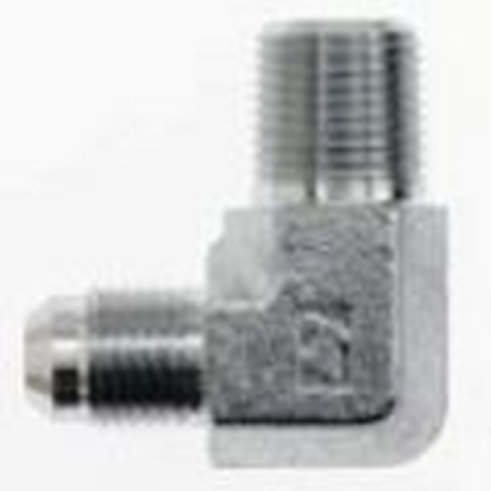 Brennan 90 deg Elbow, Series: 2501, Fitting Type: 90 deg Elbow, Connection Size 1: 1/2 in, Connection Type 1: Male SAE 37 deg JIC Flared, Connection Size 2: 1/2 in, Connection Type 2: MNPTF, Connection Type: Male JIC|MNPT, Steel, Material Construction: Steel, 3/4-16 x 1/2-14 Thread, 7/8 in Hex, Maximum Operating Pressure: 6000 psi