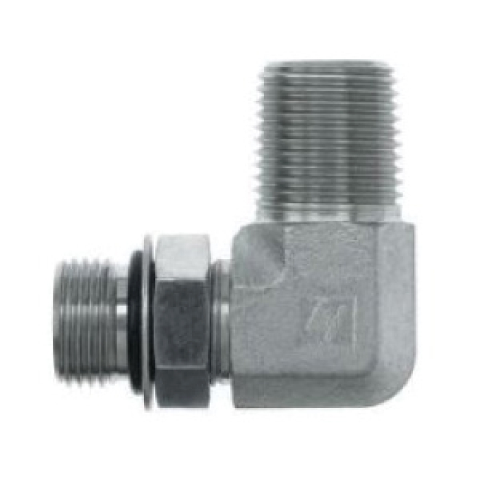 Brennan 90 deg Elbow, Series: 6806-NWO, Connection Type 1: SAE ORB, Gender 1: Male, Connection Size 1: 1-1/2 in, Thread Size 1: 1-7/8-12, Connection Type 2: NPTF, Gender 2: Male, Connection Size 2: 1-1/2 in, Thread Size 2: 1-1/2-11-1/2, Hex Size: 2-1/8 in, 3000 psi, Steel
