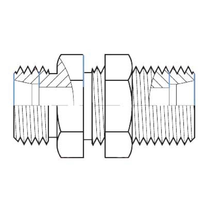 Adaptall Light-Duty Bulkhead Straight Union, Series: 5040, Connection Type 1: DIN 24 deg Tube, Gender 1: Male, Connection Size 1: 8 mm, Thread Size 1: M14 x 1.5, Connection Type 2: DIN 24 deg Tube, Gender 2: Male, Connection Size 2: 8 mm, Thread Size 2: M14 x 1.5, Hex Size: 19 mm, Carbon Steel, 49 mm Length, Dimension Standards: DIN 2353, ISO 8434-1