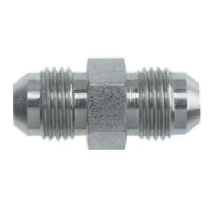Brennan Straight Adapter, Series: 2403, Connection Type 1: SAE 37 deg JIC Flare, Gender 1: Male, Connection Size 1: 1/4 in, Thread Size 1: 7/16-20, Connection Type 2: SAE 37 deg JIC Flare, Gender 2: Male, Connection Size 2: 1/4 in, Thread Size 2: 7/16-20, Hex Size: 1/2 in, 7500 psi, Steel, 1.37 in Length, Dimension Standards: MS 51501, SAE 070101