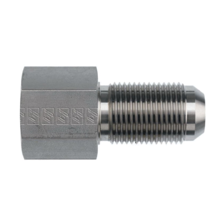 Brennan Bulkhead Straight Adapter, Series: 2705, Connection Type 1: SAE 37 deg JIC Flare, Gender 1: Male, Connection Size 1: 1 in, Thread Size 1: 1-5/16-12, Connection Type 2: NPTF, Gender 2: Female, Connection Size 2: 1 in, Thread Size 2: 1-11-1/2, Hex Size: 1-5/8 in, 3000 psi, Steel, 3.24 in Length