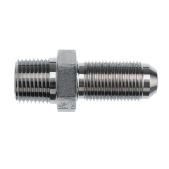 Brennan Bulkhead Straight Adapter, Series: 2706, Connection Type 1: SAE 37 deg JIC Flare, Gender 1: Male, Connection Size 1: 1-1/4 in, Thread Size 1: 1-5/8-12, Connection Type 2: NPTF, Gender 2: Male, Connection Size 2: 1-1/4 in, Thread Size 2: 1-1/4-11-1/2, Hex Size: 1-7/8 in, 3000 psi, Steel, 3.33 in Length