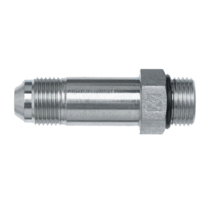 Brennan Long Straight Adapter, Series: 6400-L-O, Connection Type 1: SAE ORB, Gender 1: Male, Connection Size 1: 1 in, Thread Size 1: 1-5/16-12, Connection Type 2: SAE 37 deg JIC Flare, Gender 2: Male, Connection Size 2: 1 in, Thread Size 2: 1-5/16-12, Hex Size: 1-1/2 in, 4000 psi, Steel, 3.98 in Length, Dimension Standards: SAE 520122