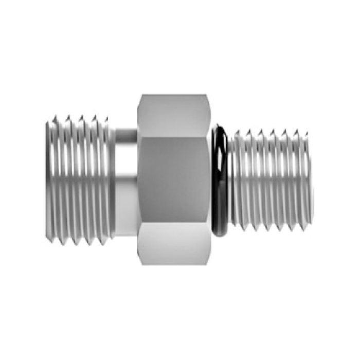 SSP® Straight Connector, Series: Soft-Seal SAE, Connection Type 1: ORFS, Gender 1: Male, Connection Size 1: 1/4 in, Thread Size 1: 9/16-18, Connection Type 2: SAE Threaded, Connection Size 2: 1/4 in, Thread Size 2: 7/16-20, Hex Size: 5/8 in, 9200 psi, 316 Stainless Steel, 1.91 in Length