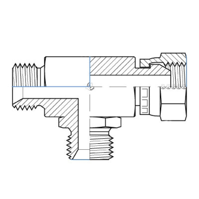 Adaptall Run Tee, Series: 9090, Connection Type 1: BSPP 60 deg Flare Swivel, Gender 1: Male, Connection Size 1: 1/4 in, Thread Size 1: G 1/4-19, Connection Type 2: BSPP 60 deg Flare Swivel, Gender 2: Female, Connection Size 2: 1/4 in, Thread Size 2: G 1/4-19, Connection Type 3: BSPP 60 deg Flare Swivel, Gender 3: Male, Connection Size 3: 1/4 in, Thread Size 3: G 1/4-19, Hex Size: 19 mm, Carbon Steel, Dimension Standards: BS 5200, ISO 1179, ISO 8434-6
