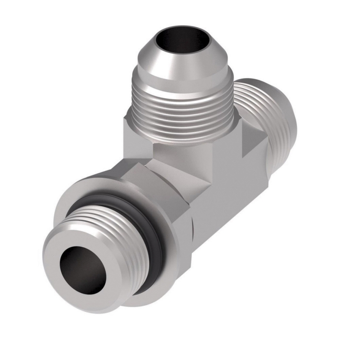 Aeroquip® 203005 Dura-Kote Carbon Steel Tee, Connection Size 1: 1-1/4 in, Gender 1: Male, Connection Type 1: O-Ring Boss x Connection Size 2: 1-1/4 in, Gender 2: Male, Connection Type 2: JIC x Connection Size 3: 1-1/4 in, Gender 3: Male, Connection Type 3: JIC, 2000 psi, -40 to 250 deg F
