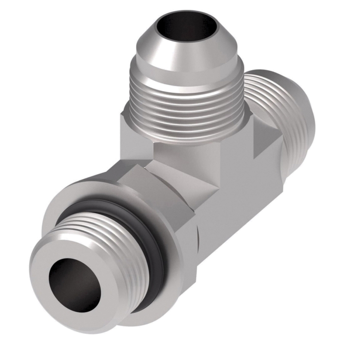 Aeroquip® 203005 Dura-Kote Carbon Steel Tee, Connection Size 1: 1/2 in, Gender 1: Male, Connection Type 1: O-Ring Boss x Connection Size 2: 1/2 in, Gender 2: Male, Connection Type 2: JIC x Connection Size 3: 1/2 in, Gender 3: Male, Connection Type 3: JIC, 4000 psi, -40 to 250 deg F