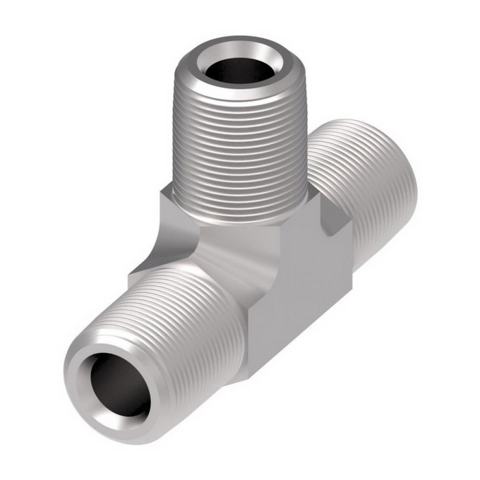 Aeroquip® 2257 Dura-Kote Carbon Steel Tee, Connection Size 1: 1/8 in, Gender 1: Male, Connection Type 1: NPT x Connection Size 2: 1/8 in, Gender 2: Male, Connection Type 2: NPT x Connection Size 3: 1/8 in, Gender 3: Male, Connection Type 3: NPT, -65 to 400 deg F