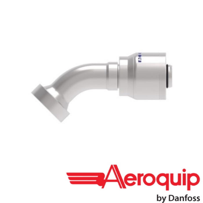 Aeroquip® 4-Spiral Crimp Hose 45 deg Elbow, 4S Series, Hose Connection: 1 in, Connection Type 1: Hose, Connection Size 1: 1 in, Hose Dash Size: 16, Connection Type 2: Flange, Connection Size 2: 1-1/4 in, Cut-Off Factor: 4.46 in, Carbon Steel, Finish: Dura-Kote, For Use With: EC525-12 to -32, GH493-12 to -32, FC636-12 to -32, FC736-12 to -32, FC500-12 to -24, FC273B-12 and -16, GH506-12 to -32, FC254-12 to -32, EC810-12 and -16, EC600-12 and -16, H430-12 to -32, H430R-12 to -32, EC525-12 to -32, H471-12 to -24, H464-12 to -32, and H485-16 Hoses, Dimensions: 6.02 in L x 2.084 in W x 1.65 in H, Dimension Standards: SAE J1176