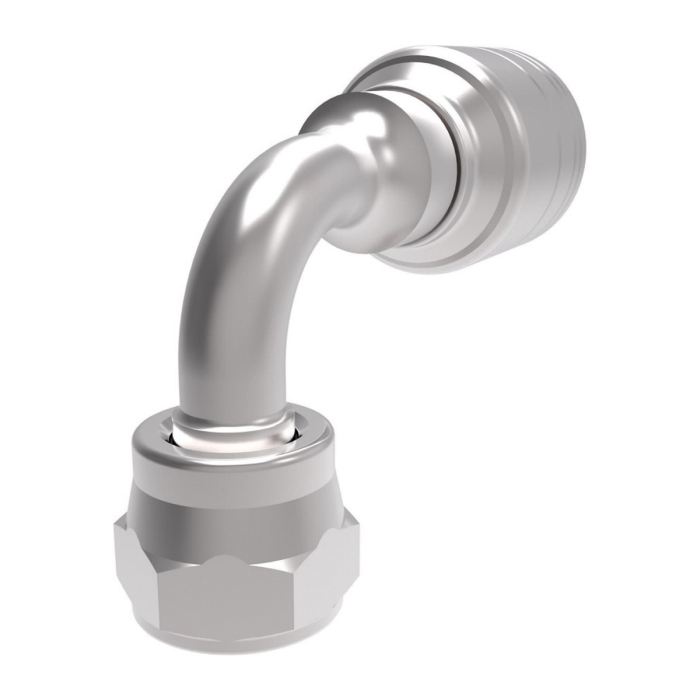 Aeroquip® 4-Spiral Crimp Hose 90 deg Short Drop Elbow, 4S Series, Hose Connection: 1-1/4 in, Connection Type 1: Hose, Connection Size 1: 1-1/4 in, Hose Dash Size: 20, Connection Type 2: ORFS Swivel, Gender 2: Female, Connection Size 2: 1-1/2 in, Nominal Size: 1-1/2 in, Thread Size 2: 2-12, Hex Size: 2-1/4 in, Cut-Off Factor: 3.85 in, Carbon Steel, Finish: Dura-Kote, For Use With: EC525-12 to -32, GH493-12 to FC636-12 to -32, FC736-12 to -32, FC500-12 to -24, FC273B-12, -16, GH506-12 to -32, FC254-12 to -32, EC810-12, -16, EC600-12, -16 H430-12 to -32, H430R-12 to -32, EC525-12 to -32, H471-12 to -24, H464-12 to -32, and H485-16 Series Hoses, Dimensions: 6.02 in L x 2.457 in W x 5.4 in H, Dimension Standards: SAE J1176