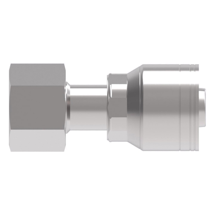 Aeroquip® 4-Spiral Crimp Straight Hose Fitting, 4S Series, Hose Connection: 1/2 in, Connection Type 1: Hose, Connection Size 1: 1/2 in, Hose Dash Size: 08, Connection Type 2: ORFS Swivel, Gender 2: Female, Connection Size 2: 5/8 in, Nominal Size: 5/8 in, Thread Size 2: 1-14, Hex Size: 1-1/8 x 7/8 in, Cut-Off Factor: 1.47 in, Carbon Steel, Finish: Dura-Kote, For Use With: EC525-12 to -32, GH493-12 to -32, FC636-12 to -32, FC736-12 to -32, FC500-12 to -24, FC273B-12 and -16, GH506-12 to -32, FC254-12 to -32, EC810-12 and -16, EC600-12 and -16, H430-12 to -32, H430R-12 to -32, EC525-12 to -32, H471-12 to -24, H464-12 to -32, and H485-16 Hoses, Dimensions: 2.64 in L x 1.335 in W x 1.335 in H, Dimension Standards: SAE J1176