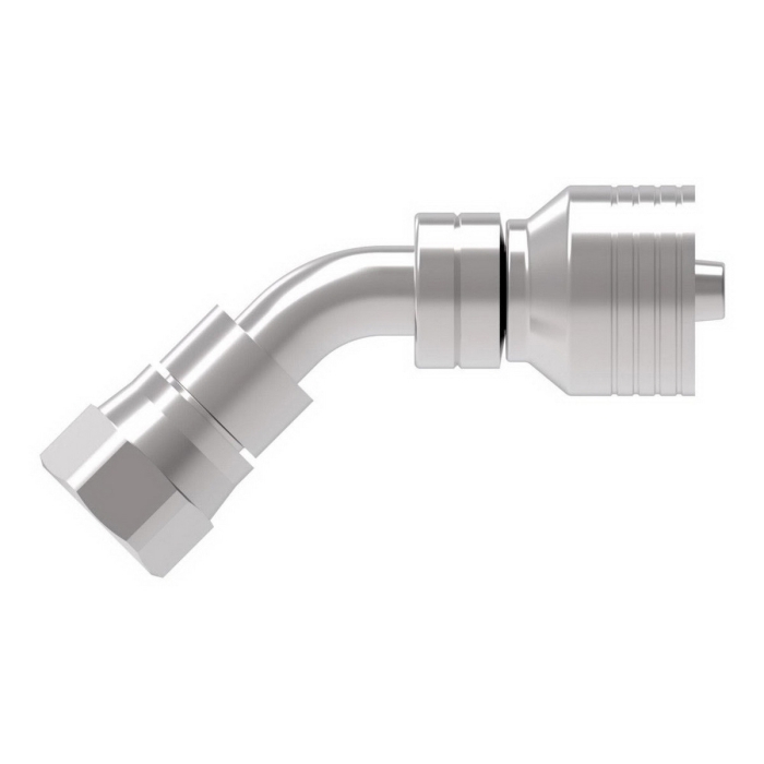 Aeroquip® 4-Spiral Crimp Hose 45 deg Elbow, 4S Series, Hose Connection: 3/8 in, Connection Type 1: Hose, Connection Size 1: 3/8 in, Hose Dash Size: 06, Connection Type 2: SAE 37 deg JIC Swivel, Gender 2: Female, Connection Size 2: 1/2 in, Nominal Size: 1/2 in, Thread Size 2: 3/4-16, Hex Size: 7/8 in, Cut-Off Factor: 2.14 in, Carbon Steel, Finish: Dura-Kote, For Use With: EC525-12 to -32, GH493-12 to FC636-12 to -32, FC736-12 to -32, FC500-12 to -24, FC273B-12, -16, GH506-12 to -32, FC254-12 to -32, EC810-12, -16, EC600-12, -16 H430-12 to -32, H430R-12 to -32, EC525-12 to -32, H471-12 to -24, H464-12 to -32, and H485-16 Series Hoses, Dimensions: 3.48 in L x 1.158 in W x 2.01 in H, Dimension Standards: SAE J1176