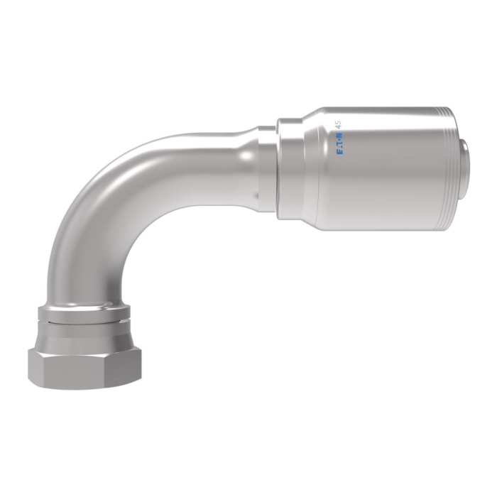 Aeroquip® 4-Spiral Crimp Hose 90 deg Elbow, 4S Series, Hose Connection: 1-1/2 in, Connection Type 1: Hose, Connection Size 1: 1-1/2 in, Hose Dash Size: 24, Connection Type 2: SAE 37 deg JIC Swivel, Gender 2: Female, Connection Size 2: 1-1/2 in, Nominal Size: 1-1/2 in, Thread Size 2: 1-7/8-12, Hex Size: 2-1/4 in, Cut-Off Factor: 5.15 in, Carbon Steel, Finish: Dura-Kote, For Use With: EC525-12 to -32, GH493-12 to -32, FC636-12 to -32, FC736-12 to -32, FC500-12 to -24, FC273B-12 and -16, GH506-12 to -32, FC254-12 to -32, EC810-12 and -16, EC600-12 and -16, H430-12 to -32, H430R-12 to -32, EC525-12 to -32, H471-12 to -24, H464-12 to -32, and H485-16 Hoses, Dimensions: 8.22 in L x 2.823 in W x 6.241 in H, Dimension Standards: SAE J1176