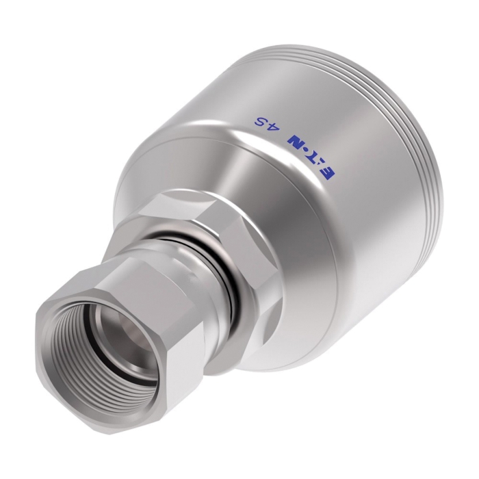 Aeroquip® 4-Spiral Crimp Straight Hose Fitting, 4S Series, Hose Connection: 3/4 in, Connection Type 1: Hose, Connection Size 1: 3/4 in, Hose Dash Size: 12, Connection Type 2: SAE 37 deg JIC Swivel, Gender 2: Female, Connection Size 2: 1 in, Nominal Size: 1 in, Thread Size 2: 1-5/16-12, Hex Size: 1-3/16 x 1-1/2 in, Cut-Off Factor: 1.73 in, Carbon Steel, Finish: Dura-Kote, For Use With: EC525-12 to -32, GH493-12 to FC636-12 to -32, FC736-12 to -32, FC500-12 to -24, FC273B-12, -16, GH506-12 to -32, FC254-12 to -32, EC810-12, -16, EC600-12, -16 H430-12 to -32, H430R-12 to -32, EC525-12 to -32, H471-12 to -24, H464-12 to -32, and H485-16 Series Hoses, Dimensions: 3.16 in L x 1.836 in W x 1.836 in H, Dimension Standards: SAE J1176
