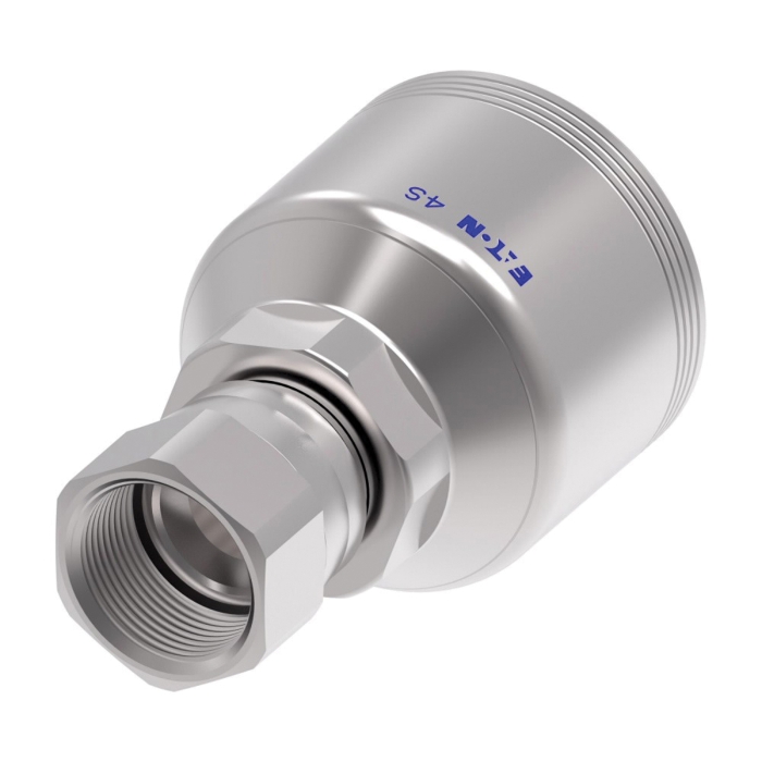 Aeroquip® 4-Spiral Crimp Straight Hose Fitting, 4S Series, Hose Connection: 3/4 in, Connection Type 1: Hose, Connection Size 1: 3/4 in, Hose Dash Size: 12, Connection Type 2: SAE 37 deg JIC Swivel, Gender 2: Female, Connection Size 2: 7/8 in, Nominal Size: 7/8 in, Thread Size 2: 1-3/16-12, Hex Size: 1-3/16 x 1-3/8 in, Cut-Off Factor: 1.63 in, Carbon Steel, Finish: Dura-Kote, For Use With: EC525-12 to -32, GH493-12 to FC636-12 to -32, FC736-12 to -32, FC500-12 to -24, FC273B-12, -16, GH506-12 to -32, FC254-12 to -32, EC810-12, -16, EC600-12, -16 H430-12 to -32, H430R-12 to -32, EC525-12 to -32, H471-12 to -24, H464-12 to -32, and H485-16 Series Hoses, Dimensions: 3.05 in L x 1.836 in W x 1.836 in H, Dimension Standards: SAE J1176