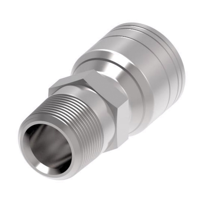 Aeroquip® Rigid 4-Spiral Crimp Straight Hose Fitting, 4S Series, Hose Connection: 1/2 in, Connection Type 1: Hose, Connection Size 1: 1/2 in, Hose Dash Size: 08, Connection Type 2: NPTF, Gender 2: Male, Connection Size 2: 3/4 in, Nominal Size: 3/4 in, Thread Size 2: 3/4-14, Hex Size: 1-1/16 in, Cut-Off Factor: 1.39 in, Carbon Steel, Finish: Dura-Kote, For Use With: EC525-12 to -32, GH493-12 to -32, FC636-12 to -32, FC736-12 to -32, FC500-12 to -24, FC273B-12 and -16, GH506-12 to -32, FC254-12 to -32, EC810-12 and -16, EC600-12 and -16, H430-12 to -32, H430R-12 to -32, EC525-12 to -32, H471-12 to -24, H464-12 to -32, and H485-16 Hoses, Dimensions: 2.56 in L x 1.335 in W x 1.335 in H, Dimension Standards: SAE J1176