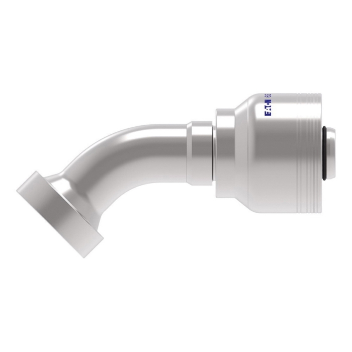 Aeroquip® 6-Spiral Crimp Hose 45 deg Elbow, 6S Series, Hose Connection: 1-1/4 in, Connection Type 1: Hose, Gender 1: Female, Connection Size 1: 1-1/4 in, Hose Dash Size: 20, Connection Type 2: Flange, Connection Size 2: 1-1/4 in, Cut-Off Factor: 4.5 in, Carbon Steel, Finish: Dura-Kote, For Use With: FC500-32, FC273B-20 thru -32, FC606-16 thru -24, EC810-20 thru -32, GH466-20,-24 H471-32, EC810-20 thru -32, and H485-20,-24 Series Hoses, Dimensions: 6.7 in L x 2.61 in W x 1.65 in H, Dimension Standards: SAE J1176