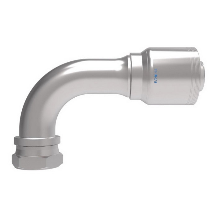 Aeroquip® 6-Spiral Crimp Hose 90 deg Elbow, 6S Series, Hose Connection: 2 in, Connection Type 1: Hose, Connection Size 1: 2 in, Hose Dash Size: 32, Connection Type 2: BSPP 60 deg Cone Seat Swivel, Gender 2: Female, Connection Size 2: 2 in, Nominal Size: 2 in, Thread Size 2: G 2-11, Hex Size: 2.755 in, Cut-Off Factor: 6.6 in, Carbon Steel, Finish: Dura-Kote, For Use With: FC500-32, FC273B-20 thru -32, FC606-16 thru -24, EC810-20 thru -32, GH466-20,-24 H471-32, EC810-20 thru -32, and H485-20,-24 Series Hoses, Dimensions: 11.051 in L x 3.555 in W x 8.73 in H, Dimension Standards: SAE J1176
