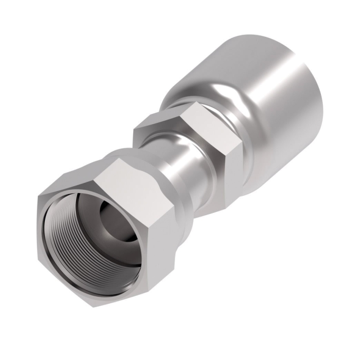 Aeroquip® Crimp Straight Hose Fitting, 1G Series, Hose Connection: 1-1/4 in, Connection Type 1: Hose, Connection Size 1: 1-1/4 in, Hose Dash Size: 20, Connection Type 2: ORFS Swivel, Gender 2: Female, Connection Size 2: 1-1/4 in, Nominal Size: 1-1/4 in, Thread Size 2: 1-11/16-12, Hex Size: 1-7/8 x 1-3/4 in, Cut-Off Factor: 2.33 in, Carbon Steel, Finish: Dura-Kote, For Use With: 2583, 2661, FC318, FC466, FC498, FC598, FC619, and FC699 Series Hoses, Dimensions: 4.64 in L x 2.16 in W x 2.16 in H