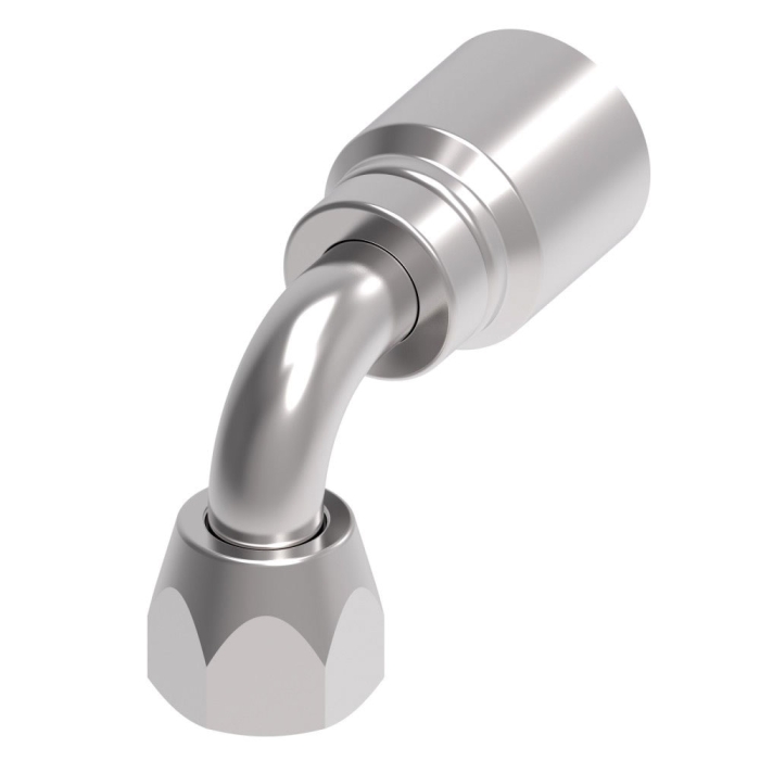 Aeroquip® Crimp Hose 90 deg Elbow, 1G Series, Hose Connection: 3/4 in, Connection Type 1: Hose, Connection Size 1: 3/4 in, Hose Dash Size: 12, Connection Type 2: SAE 37 deg JIC Swivel, Gender 2: Female, Connection Size 2: 3/4 in, Nominal Size: 3/4 in, Thread Size 2: 1-1/16-12, Hex Size: 1-1/4 in, 3000 psi, Cut-Off Factor: 2.17 in, Carbon Steel, Finish: Dura-Kote, For Use With: 2583, 2661, FC318, FC466, FC498, FC598, FC619, and FC699 Series Hoses, Dimensions: 3.1 in L x 1.42 in W x 3.11 in H