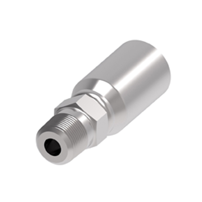 Aeroquip® 100R14A Rigid Crimp Straight Hose Fitting, Coll-O-Crimp E Series, Hose Connection: 1/4 in, Connection Type 1: Hose, Connection Size 1: 1/4 in, Hose Dash Size: 04, Connection Type 2: NPTF, Gender 2: Male, Connection Size 2: 1/4 in, Nominal Size: 1/4 in, Thread Size 2: 1/4-18, Hex Size: 9/16 in, 9500 psi, Cut-Off Factor: 0.95 in, Carbon Steel, Finish: Zinc Clear Trivalent Chromate, For Use With: H009, H209, H243, H265, H275, H277, H285, H435, H436, S-TW, and SC-TW Series PTFE Hoses, Dimensions: 1.79 in L x 0.57 in W x 0.57 in H
