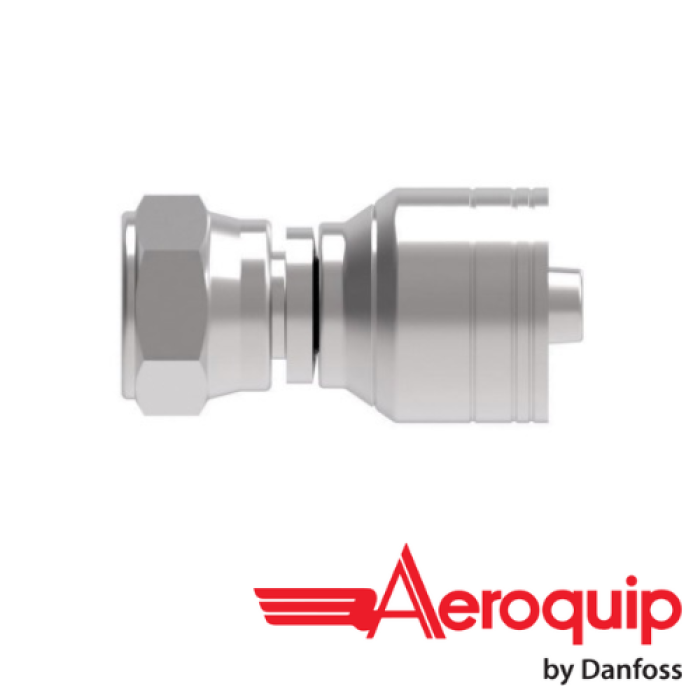 Aeroquip® Crimp Straight Hose Fitting, 1A Series, Hose Connection: 5/8 in, Connection Type 1: Hose, Gender 1: Female, Connection Size 1: 5/8 in, Hose Dash Size: 10, Connection Type 2: JIS/BSPP 60 deg Cone Swivel, Gender 2: Female, Connection Size 2: 3/4 in, Nominal Size: 3/4 in, Thread Size 2: G 3/4-14, Hex Size: 1.26 in, Cut-Off Factor: 1.47 in, Carbon Steel, Finish: Dura-Kote, For Use With: 2661 (-12 thru -32), FC310, FC510, FC579, FC611, FC619 (-12 thru -32), FC639/FC839B, FC693, FC735, FC849/FC849B, GH120, GH194, GH195, GH663, GH681-6, GH781, GH793, EC115, EC215, EC110, EC210, and EC118 Series Hoses, Dimensions: 2.72 in L x 1.26 in W x 1.26 in H