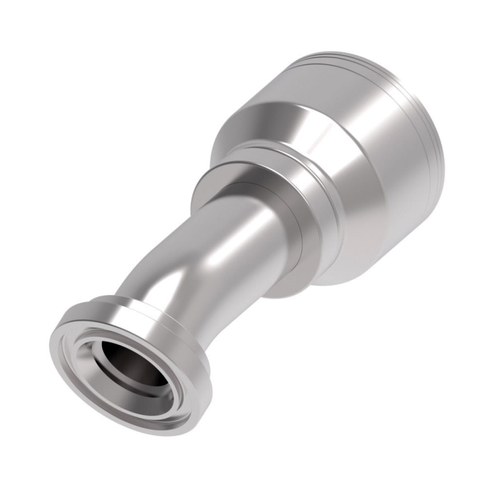 Aeroquip® Crimp Hose 22.5 deg Elbow, 1A Series, Hose Connection: 1-1/4 in, Connection Type 1: Hose, Connection Size 1: 1-1/4 in, Hose Dash Size: 20, Connection Type 2: SAE Code 61 Flange, Gender 2: Female, Connection Size 2: 1-1/4 in, Cut-Off Factor: 3.83 in, Carbon Steel, Finish: Dura-Kote, For Use With: 2661 (-12 thru -32), FC310, FC510, FC579, FC611, FC619 (-12 thru -32), FC639/FC839B, FC693, FC735, FC849/FC849B, GH120, GH194, GH195, GH663, GH681-6, GH781, GH793, EC115, EC215, EC110, EC210, and EC118 Series Hoses, Dimensions: 6.56 in L x 2.41 in W x 2.66 in H