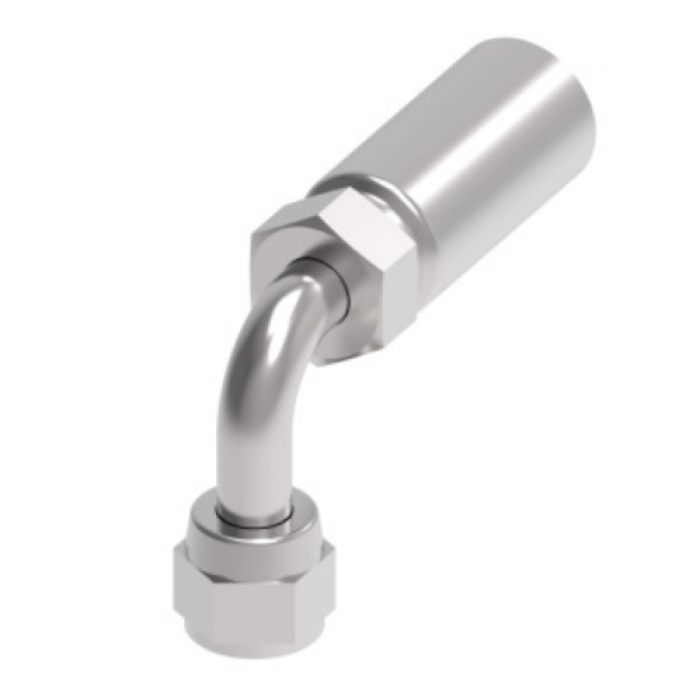 Aeroquip® Permanent Swage 90 deg Elbow, 903 Series, Hose Connection: 3/8 in, Connection Type 1: Hose, Connection Size 1: 3/8 in, Hose Dash Size: 06, Connection Type 2: SAE 37 deg JIC Swivel, Gender 2: Female, Connection Size 2: 1/2 in, Nominal Size: 1/2 in, Thread Size 2: 3/4-16, Hex Size: 3/4 x 7/8 in, Cut-Off Factor: 1.5 in, Steel, Finish: Plated, For Use With: 3R30, 3130, 3740, 37AL, 3580, 25CT, 30CT, and 3800 Hoses