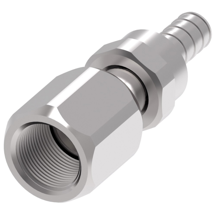 Aeroquip® Everswage Permanent Swage Straight Hose Insert, NJIC Series, Hose Connection: 1/4 in, Connection Type 1: Hose, Connection Size 1: 1/4 in, Hose Dash Size: 04, Connection Type 2: JIC, Gender 2: Female, Connection Size 2: 1/4 in, Nominal Size: 1/4 in, Stainless Steel
