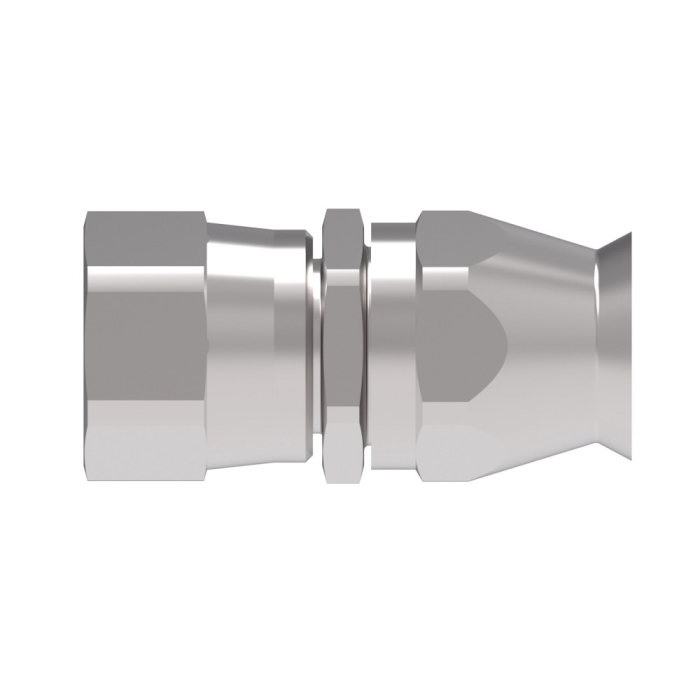 Aeroquip® Super Gem Reusable Straight Hose Fitting, 190600 Series, Hose Connection: 3/8 in, Connection Type 1: Hose, Connection Size 1: 3/8 in, Hose Dash Size: 06, Connection Type 2: SAE 37 deg JIC Flare Swivel, Gender 2: Female, Connection Size 2: 3/8 in, Nominal Size: 3/8 in, Thread Size 2: 9/16-18, Hex Size: 0.69 in, Cut-Off Factor: 1.22 in, Stainless Steel, For Use With: 2807, FC465, and S-TW PTFE Series Hoses, Dimensions: 1.74 in L x 0.69 in W x 0.69 in H