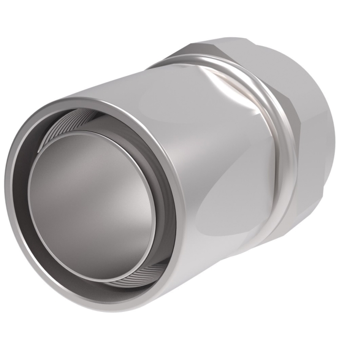 Aeroquip® 100R5 Reusable Straight Hose Fitting, 411 Series, Hose Connection: 1-1/2 in, Connection Type 1: Hose, Connection Size 1: 1-1/2 in, Hose Dash Size: 24, Connection Type 2: SAE 37 deg JIC Swivel, Gender 2: Female, Connection Size 2: 1-1/2 in, Nominal Size: 1-1/2 in, Thread Size 2: 1-7/8-12, Hex Size: 2.25 x 1.94 in, Cut-Off Factor: 1.83 in, Carbon Steel, Finish: Dura-Kote, For Use With: 302A, 303, 1503, 2580, 2651, FC234, FC300, FC321, FC350 and FC355 Series Hoses, Dimensions: 3.28 in L x 2.25 in W x 2.25 in H