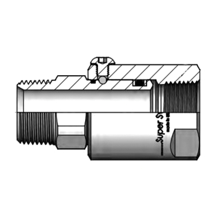 Inline swivels rotating joints provide for minimal friction allowing free movement of hoses and piping in fluid conducting power systems. The compact design fits in tight areas. Super swivels one-piece barrel and stem with integrated ball bearing race design withstands heavy side loads preventing premature seal wear and leaks. This pass-through inline design is the most standard configuration in live swivels. Super swivels connect directly to hose lines without adapters reducing overall costs of hydraulics.