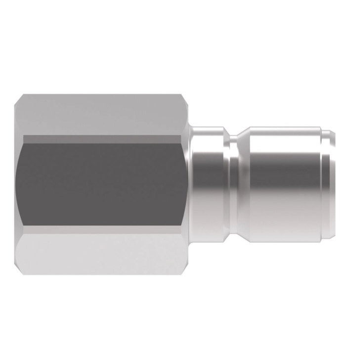 Aeroquip® Coupling Plug, ST Series, Connection Type 1: Quick Disconnect, Gender 1: Male, Connection Size 1: 1/4 in, Connection Type 2: NPTF, Gender 2: Female, Connection Size 2: 1/4 in, Thread Size 2: 1/4-18, Hex Size: 0.69 in, 7500 psi, 416 Stainless Steel, Dimensions: 1.45 in L x 0.79 in W x 0.79 in H, -40 to 250 deg F
