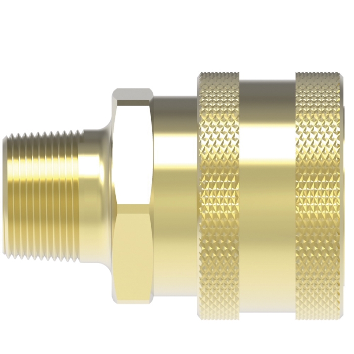 Aeroquip® Coupling, ST Series, Connection Type 1: Quick Disconnect, Gender 1: Female, Connection Size 1: 1/4 in, Connection Type 2: NPTF, Gender 2: Male, Connection Size 2: 1/4 in, Thread Size 2: 1/4-18, Hex Size: 0.81 in, 5200 psi, Brass, Dimensions: 1.72 in L x 0.97 in W x 0.97 in H, -40 to 250 deg F