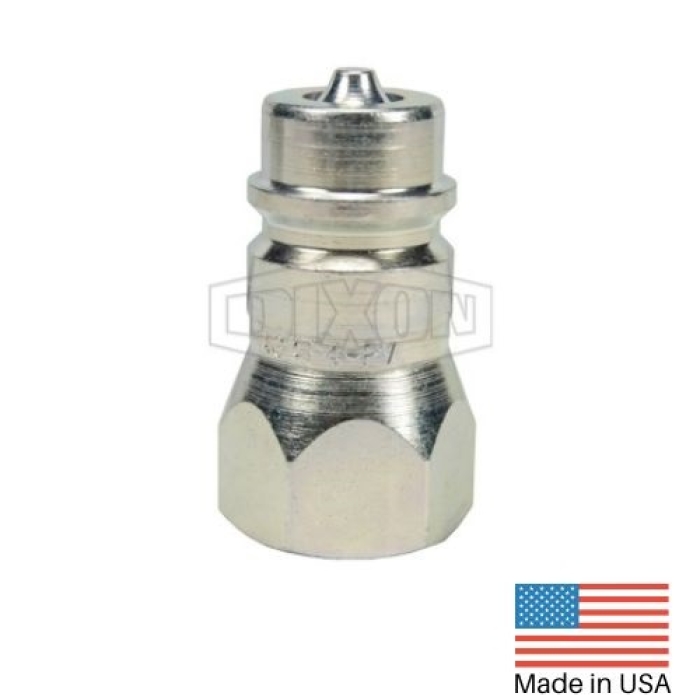 Dixon® Poppet Valve Plug, AG Series, Connection Type 1: Quick Disconnect, Connection Size 1: 1/2 in, Connection Type 2: BSPP, Gender 2: Female, Connection Size 2: 1/2 in, Thread Size 2: 1/2-14, Hex Size: 1-1/16 in, 4000 psi, Steel, Finish: Trivalent Chrome-Plated, Dimensions: 1.21 in OD x 2.08 in L, -40 to 250 deg F