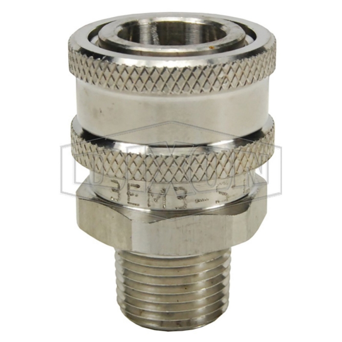 Dixon® Straight Through Interchange Coupler, E Series, Connection Type 1: Quick Disconnect, Connection Size 1: 1 in, Connection Type 2: NPTF, Gender 2: Male, Connection Size 2: 1 in, Thread Size 2: 1-11-1/2, 1700 psi, 303 Stainless Steel, -40 to 250 deg F