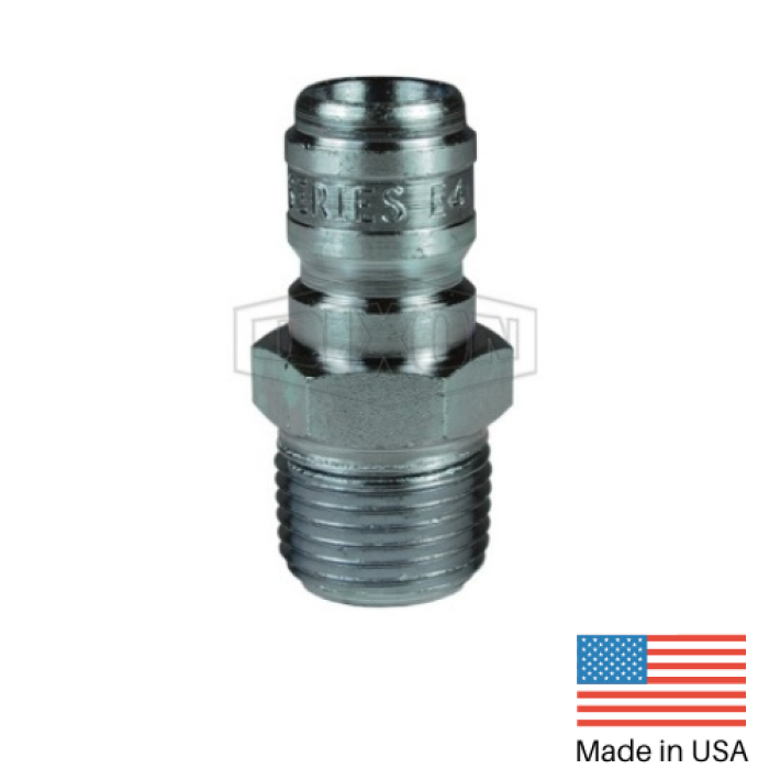Dixon® Straight Through Interchange Plug, E Series, Connection Type 1: Quick Disconnect, Connection Size 1: 3/8 in, Connection Type 2: NPTF, Gender 2: Male, Connection Size 2: 3/8 in, Thread Size 2: 3/8-18, Hex Size: 3/4 in, 5500 psi, 303 Stainless Steel, Dimensions: 0.79 in OD x 1.69 in L