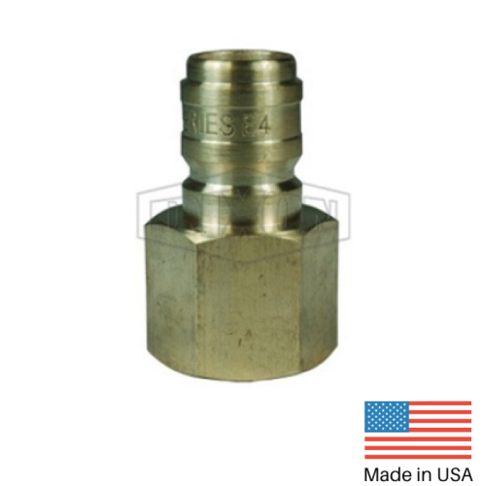 Dixon® Straight Through Interchange Plug, E Series, Connection Type 1: Quick Disconnect, Connection Size 1: 1 in, Connection Type 2: NPTF, Gender 2: Female, Connection Size 2: 1 in, Thread Size 2: 1-11-1/2, Hex Size: 1-1/2 in, 1200 psi, Brass, Dimensions: 1.73 in OD x 2.36 in L