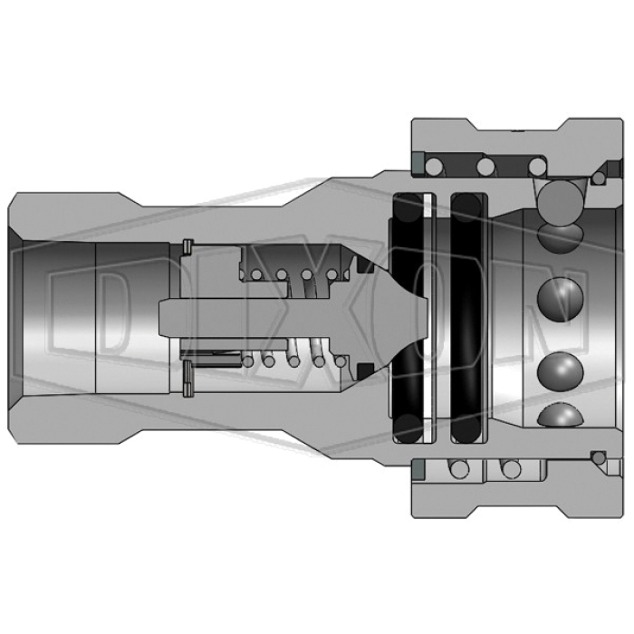 Dixon® ISO-B Poppet Interchange Valve Coupler, H Series, Connection Type 1: Quick Disconnect, Connection Size 1: 1/4 in, Connection Type 2: NPTF, Gender 2: Female, Connection Size 2: 1/4 in, Thread Size 2: 1/4-18, Hex Size: 7/8 in, 3500 psi, 303 Stainless Steel, Dimensions: 2.26 in L, Dimension Standards: ISO 7241 Series B, -40 to 250 deg F