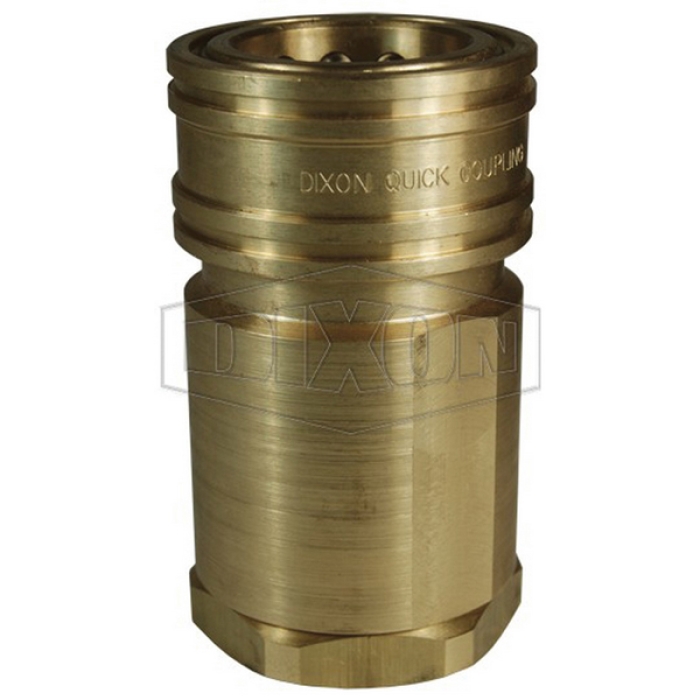 Dixon® ISO-B High-Volume Interchange Coupler, H Series, Connection Type 1: Quick Disconnect, Connection Size 1: 1-1/4 in, Connection Type 2: NPTF, Gender 2: Female, Connection Size 2: 1-1/4 in, Thread Size 2: 1-1/4-11-1/2, Hex Size: 2-3/8 in, 1000 psi, Brass, Dimensions: 2.6 in OD x 4.43 in L, Dimension Standards: ISO 7241 Series B, -40 to 250 deg F